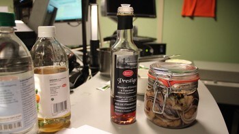 Kjøp på nett eller i butikk. Finner du ikke dem, må du kjøpe noen søte, røde epler, de gir den rette sødmen her og er passe melne. Ha i bringebæreddik og eplemost.